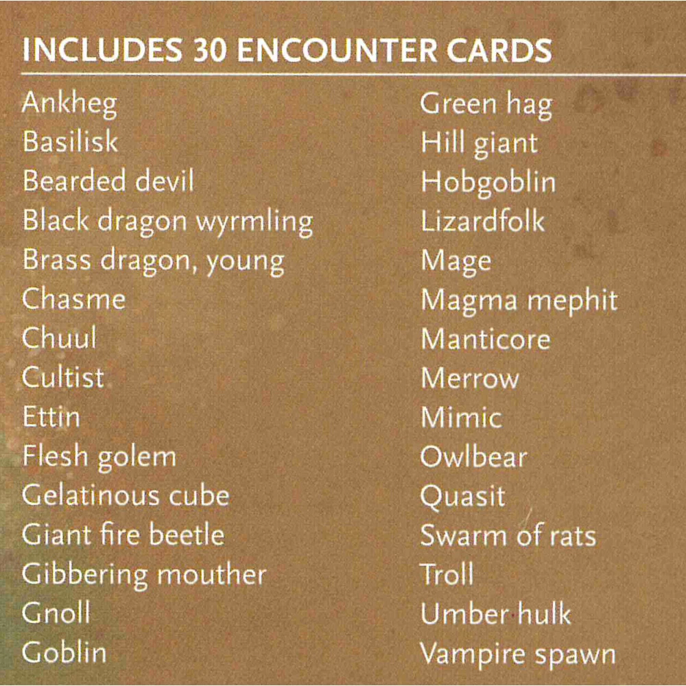 Designed to rest on the top of your DM screen, these encounter cards feature gorgeous, all-new artwork on the front and DM info on the back. DM info includes exclusive Beadle & Grimm’s Tactical Tips written by Keith Ammann, author of the blog The Monsters Know What They’re Doing.