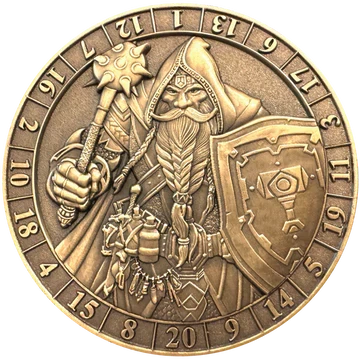 All characters and monsters are depicted on d20 Dice Coins. In the majority of RPG systems, d20’s are used to determine hits, saving throws, skill checks, etc. It is the most important dice.