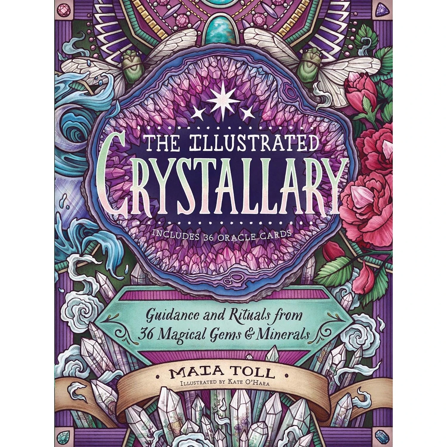 In the ancient world there were three medicine kingdoms: animal, vegetable, and mineral. Following her previous acclaimed volumes on animal (The Illustrated Bestiary) and vegetable (The Illustrated Herbiary), Maia Toll fulfills the call for mineral with The Illustrated Crystallary, exploring the mystical qualities of 36 fascinating crystals and minerals, including amethyst, hematite, mica, smokey quartz, emerald, ruby, and more. Combining bits of ancient wisdom with her own insights, Toll illuminates the aspects and energy of each stone and, through rituals and reflections, the life guidance it might offer contemporary readers. Obsidian’s shiny surface and sharp edges reflect the shadowy corners of the self and serve as the tool for cutting them loose. The sky-like color of earthly turquoise provides balance between opposing forces. Stunning illustrations by Kate O’Hara magnify the symbolism of each crystal and are also featured on 36 bonus cards included in an envelope bound in the back of the book.